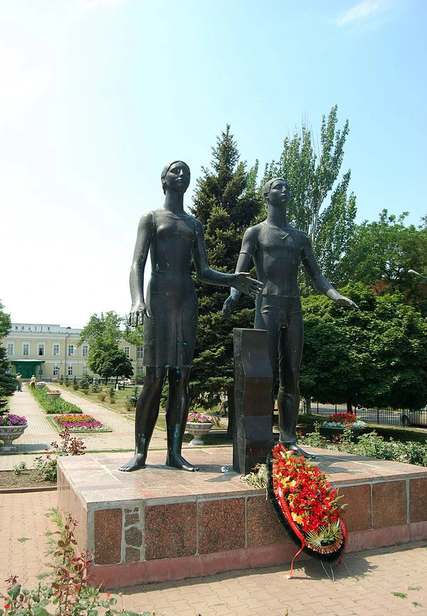 - Памятник таганрогским подпольщикам «Клятва юности» — перед зданием старой Чеховской гимназии[5].Установка и создание памятника посвящены участникам Таганрогского подполья, которое действовало в 1941—1943 года. Авторами скульптурного монумента стали Владимир и Валентина Грачевы. Оформлением постамента и окружающих его элементов руководил архитектор Пантелеймонов. Высота монумента составила 4 метра, высота постамента — полметра[6].
