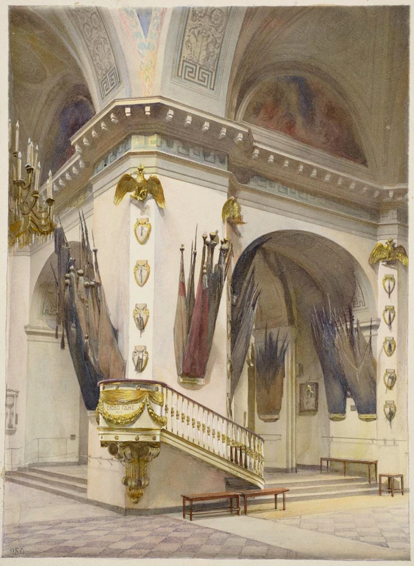 12 ноября 1796 года, во время царствования императора Павла I, полковой Спасо-Преображенский собор получил почётное название «собор всей гвардии»[1][2][3]. 8 (20) августа 1825 года возник пожар, и первый Спасо-Преображенский собор сгорел, но из него успели вынести все основные святыни. От собора остались лишь стены[1][2][3][4].