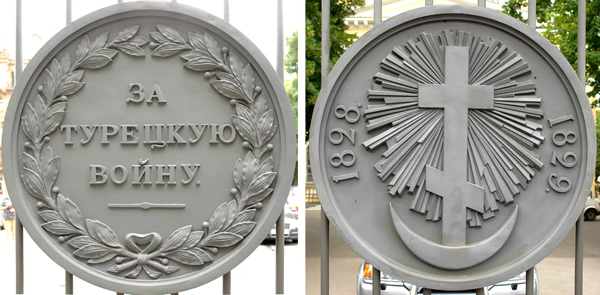 В 1832—1833 годах по проекту архитектора Стасова в память о победе в русско-турецкой войне 1828—1829 годов вокруг собора сооружена ограда, основа которой — стволы трофейных турецких пушек, взятых со стен турецких крепостей Измаила, Варны, Тульчи, Исакчи, Силистрии, а также взятые в сражении под Кулевчи. На стволах сохранились вычеканенные гербы Османской империи, а на некоторых из них — данные им имена: «Гнев аллаха», «Священный полумесяц», «Гром извергающий», «Дарю лишь смерть»[14]. По повелению императора Николая I в дар собору были выделены 18- и 24-фунтовые трофейные орудия.