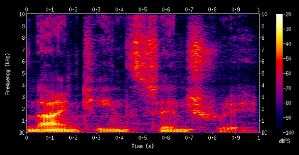 Наиболее распространенным представлением спектрограммы является двумерная диаграмма: на горизонтальной оси представлено время, по вертикальной оси — частота; третье измерение с указанием амплитуды на определенной частоте в конкретный момент времени представлено интенсивностью или цветом каждой точки изображения.