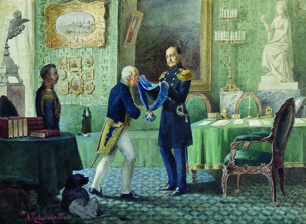 Вскоре он получил новые назначения: герольда, а затем секретаря ордена святого апостола Андрея Первозванного, а также правителя канцелярии комиссии по снабжению резиденции припасами. Последняя должность дала ему возможность познакомиться с наследником престола великим князем Александром Павловичем, что стало важным шагом на пути к будущему сближению с новым императором[28][29].