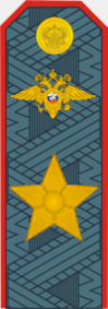 | Звание | Младший лейтенант полиции | Лейтенант полиции | Старший лейтенант полиции | Капитан полиции | Майор полиции | Подполковник полиции | Полковник полиции | Генерал-майор полиции | Генерал-лейтенант полиции | Генерал-полковник полиции | Генерал полиции РФ | |
