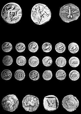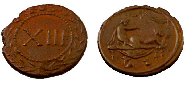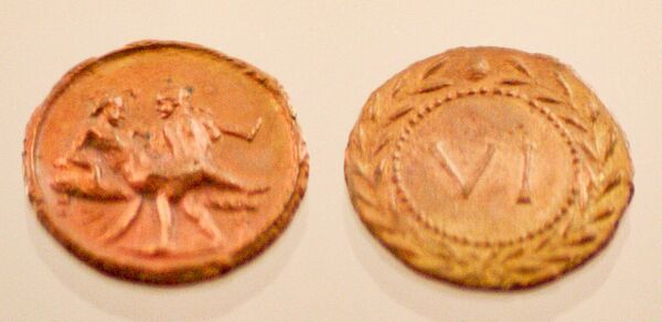 Существовали аналогичные изделия из других материалов. Несколько таких изделий из терракоты и кости были найдены при раскопках Помпей.[2] Вообще различные жетоны довольно широко использовались в Риме в качестве входных билетов на зрелища, лотерейных билетов и т. д.