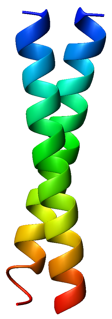 - Burkhard P, Ivaninskii S, Lustig A (May 2002). “Improving coiled-coil stability by optimizing ionic interactions”. Journal of Molecular Biology. 318 (3): 901—10. DOI:10.1016/S0022-2836(02)00114-6. PMID 12054832.