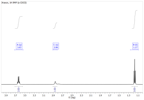 ЯМР-спектроскопия ядер 1H широко используются для анализа спиртов, однако на величины химических сдвигов протонов гидроксильной группы (δ, м. д.) существенно влияет природа растворителя и другие внешние факторы. Для алифатических и алициклических спиртов δ составляет 0,5—3,0 (в ДМСО-d6: 4—6)[105].