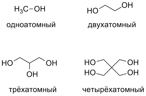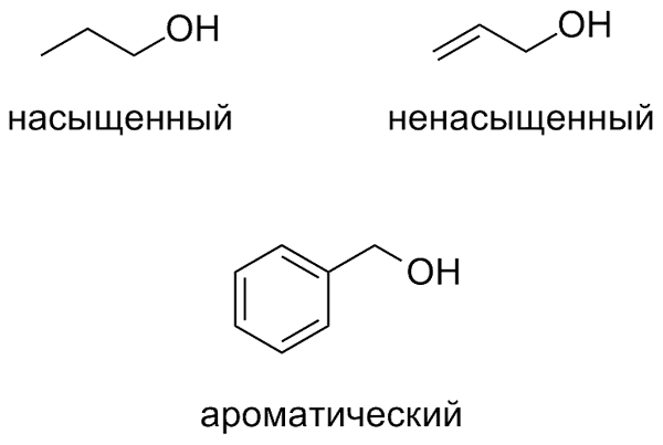 Спирты классифицируются следующим образом (в скобках приведены примеры)[8]: