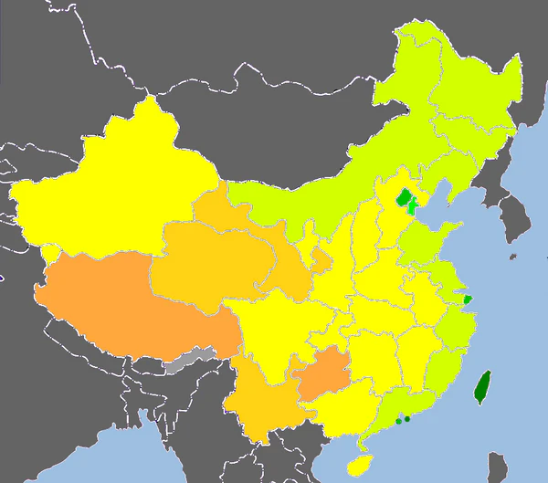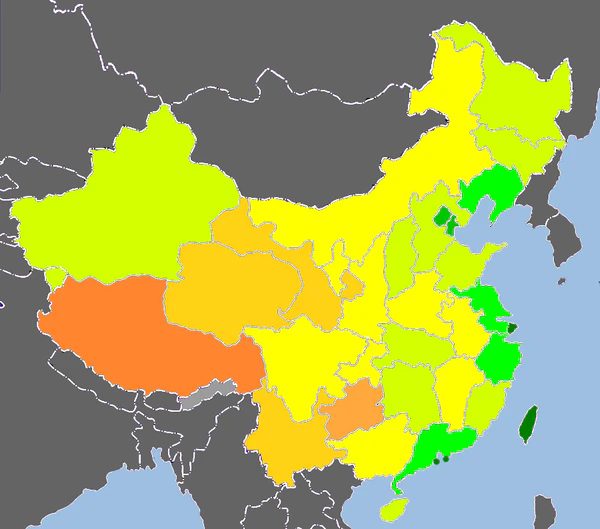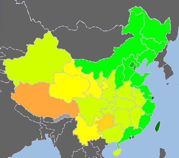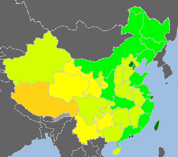 | 10 | Внутренняя Монголия | 0,722 | ||||