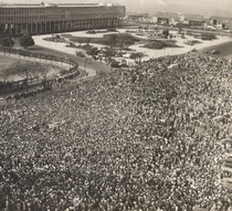 Результаты выборов 1930 года были оспорены проигравшим их Жетулио Варгасом, обвинившим президента Вашингтона Луиса в фальсификации результата в пользу победившего Жулиу Престиса ди Албукерки. 3 октября 1930 года сразу в восьми штатах были свергнуты лояльные правительству губернаторы, на следующий день ещё в трёх штатах было введено военное положение. Спустя неделю Варгас и его сподвижники выехали в являвшимся столицей Рио-де-Жанейро, после чего были перекрыты дороги и произошли ряд столкновения между правительственными и революционными силами. 23 октября 1930 года восстал столичный гарнизон, вынудив президента Луиса покинуть пост; на следующий день контр-адмирал Исайас ди Норонья и генералы Тасу Фрагозу и Мена Баррету создали военную правительственную хунту, взявшую на себя управление страной до прибытия 3 ноября 1930 года в столицу повстанцев во главе с «верховным вождём революции» Варгасом, принявшим полномочия временного президента. Эти события вошли в историю как революция 1930 года[66], а последовавший пятнадцатилетний период — как Эра Варгаса[107]. В июле—октябре 1932 года в штате Сан-Пауло произошло восстание с целью восстановления конституционного правления[108]; оно было подавлено, но впоследствии Варгас удовлетворил большинство требований, в том числе была избрана 3 мая 1933 года Конституционная национальная ассамблея (порт. Assembleia Nacional Constituinte), обнародовавшая 16 июля 1934 года новую конституцию[109], на основании переходных положений которой ассамблея избрала Варгаса президентом республики (инаугурация состоялась 20 июля 1934 года)[110].
