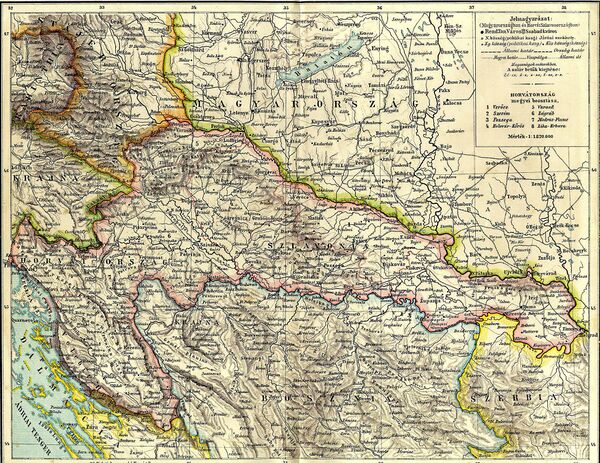 Королевство Хорватия и Славония (сербохорв. Kraljevina Hrvatska i Slavonija, венг. Horvát-Szlavón Királyság, нем. Königreich Kroatien und Slawonien) было номинально автономным королевством в составе Австро-Венгерской империи. Оно было создано хорватско-венгерским соглашением (хорв. Hrvatsko-ugarska nagodba), утверждённым императором Францем Иосифом 12 ноября 1868 года, определившим положение Хорватии и Славонии в составе Земель короны Святого Иштвана (Транслейтании). Объединило в себе Королевство Хорватию и Королевство Славонию, с последующим включением 8 января 1881 года сопряжённых с ними земель Военной границы[4]. Официальным названием королевства было Королевство Хорватии, Славонии и Далмации (сербохорв. Kraljevina Hrvatsku, Dalmaciju i Slavoniju, лат. Regnum Croatiae, Dalmatiae et Slavoniae), что связано со спорностью отнесения Королевства Далмации (традиционно считавшегося принадлежащим короне Святого Иштвана) в состав Цислейтании; в историографии за ним закрепилось название Триединое королевство (сербохорв. Trojedna kraljevina)[5]. Официальным языком был признан хорватский, однако ещё в 1850 году крупнейшими сербскими и хорватскими учёными было подписано «Венское литературное соглашение» — первый из двух договоров о единстве сербскохорватского языка[6].