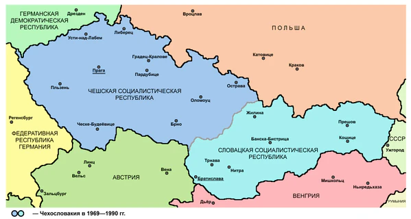 Ранее являвшаяся унитарным государством, 1 января 1969 года[комм. 11] Чехословацкая Социалистическая Республика стала федерацией двух равноправных государств — Чешской Социалистической Республики (чеш. Česká socialistická republika) и Словацкой Социалистической Республики (словацк. Slovenská socialistická republika). В Чехии было сформировано республиканское правительство со значительным объёмом полномочий, с председателем правительства во главе (чеш. předseda vlády České socialistické republiky)[25].