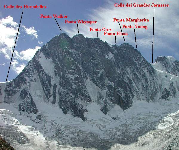 45°52′07″ с. ш. 06°59′17″ в. д.GЯO | 4208 | 843 | Монблан | 30 июня 1868 года, Х. Уокер, М. Андерегг, Ж. Гранде, И. Яун | ||