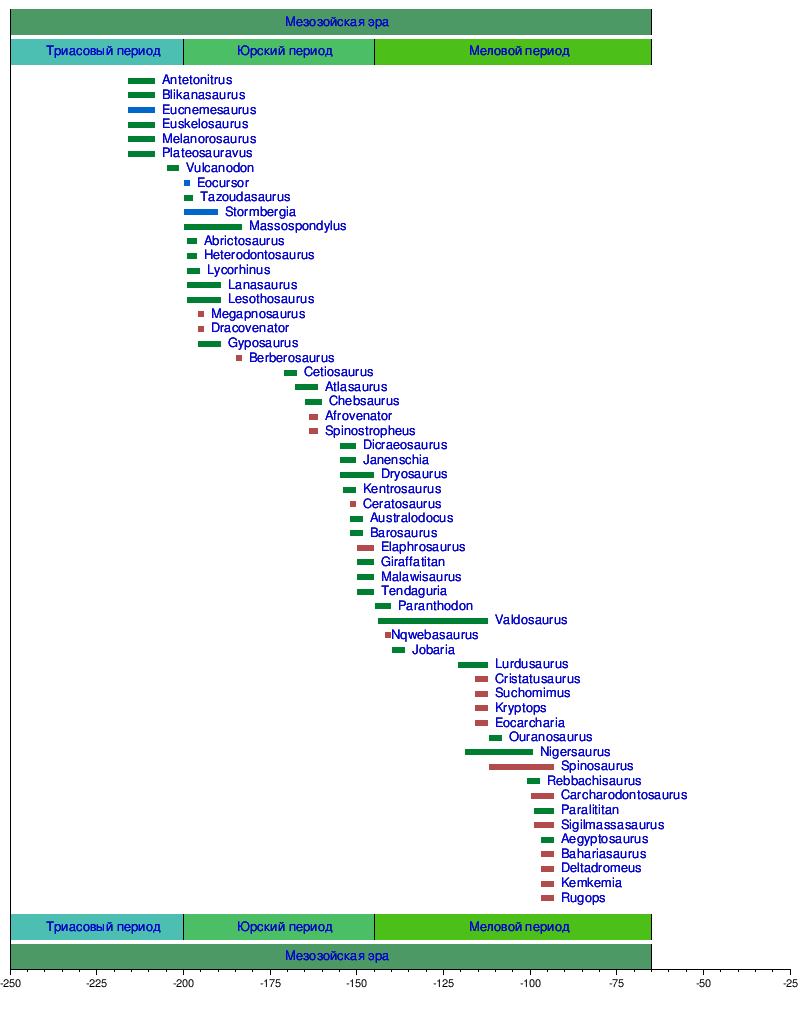 | Melanorosaurus | Триасовый | растительноядный | — |
