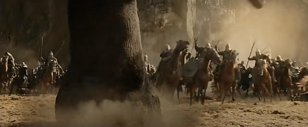 Эти животные во «Властелине Колец» впервые описаны в «Двух крепостях»[12]. Сэмуайз Гэмджи выказывал огромное желание увидеть одного из них и рассказывал о хоббитской традиции описывать мумакил «большими, как дом» (см. ниже). Позже Сэм действительно увидел одного мумака, по размерам напоминавшего «движущийся холм». Толкин пишет о том, что «страх и удивление» Сэма могли ещё более увеличить животное в его глазах.