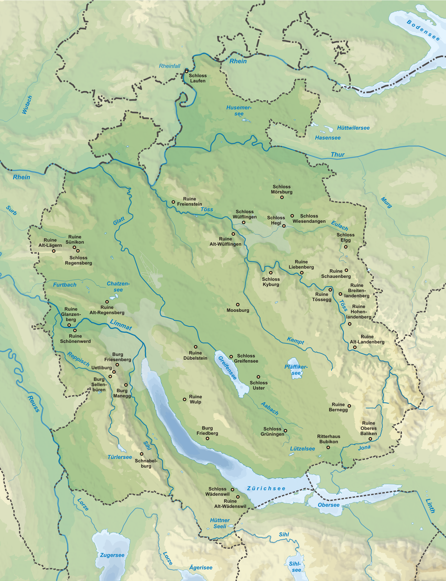 См. основную статью: Список крепостей и замков в кантоне Цюрих (Liste der Burgen und Schlösser im Kanton Zürich)