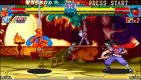 - Marvel vs. Capcom: Clash of Super Heroes (1998, Capcom) — файтинг с героями Marvel и известными персонажами Capcom.