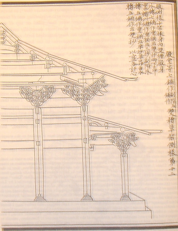 - Модульная система в архитектуре: Самым древним из известных китайских архитектурных трактатов, который сохранился в полном объёме, является Инцзао Фаши, опубликованный учёным и государственным деятелем Ли Цзе (1065—1110) в 1103 г., в эпоху династии династии Сун (960—1279). Хотя имеются и другие, предшествовавшие этому, документы, например, «Национальный закон о строительстве» эпохи династии Тан (618—907), но он сохранился лишь частично в других текстах.[199] Трактат Ли Цзе содержит описания и иллюстрации, детализирующие систему цай фэнь (材份制), касающуюся восьми стандартных размеров модульных компонентов архитектуры из древесины и детализацию плотницких работ. Эти восемь стандартных типов модульных компонентов из древесины в Инцзао Фаши, среди которых тип I является самым крупным, а тип VIII — самым маленьким, использовались для определения конечной пропорции и масштаба здания в целом для всех классов деревянных сооружений: дворцов, особняков, обычных домов и павильонов. Все сооружения были поделены на иерархические категории, по которой классифицировалось применение методологии цай фэнь. Например, для здания типа дворца использовались типы только с I по V, тогда как для особняка не использовались компоненты больше, чем тип III и меньше типа VI. В этой системе детализации плотницких работ наименьший тип VIII имел размер один цай, который равен современным 15 см (5,9 дюйма), а один цай делится на пятнадцать фэнь (отсюда и название этой модульной системы).[200]
