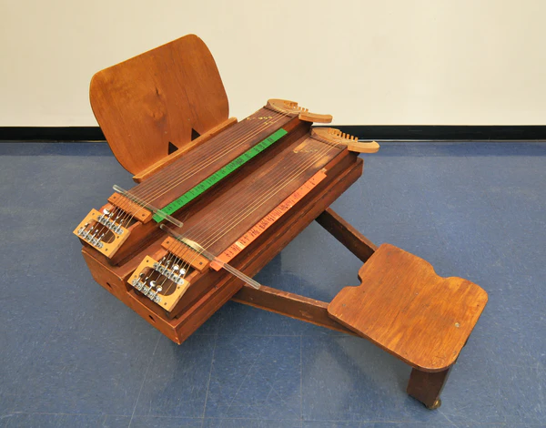 Хромелодеоны - это модифицированные Гарри Парчем насосные органы с перестройкой на его звуковую систему. Хромелодеон I появился в 1945 году в результате модификации 73-клавишного насосного органа. Хромелодеон II, модифицированный в 1959 году, представляет собой расширенный до 88 клавиш насосный орган. Обе клавиатуры имеют цветные и пронумерованные метки, представляющие соотношения системы настройки.[14]