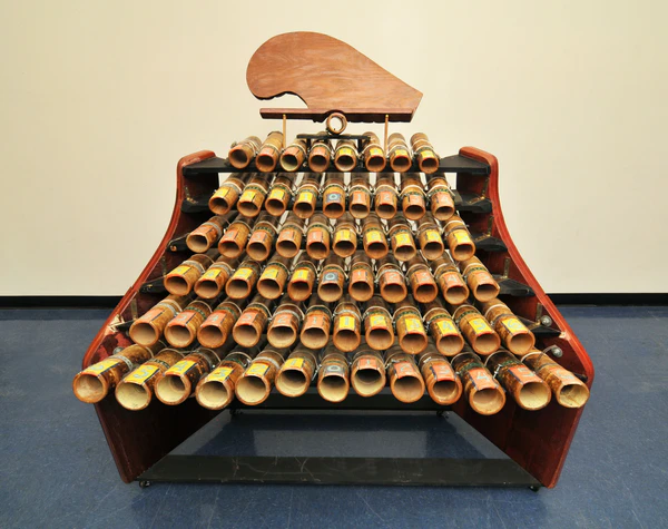 "Трофеи войны" - коллекция инструментов, включающая облачные камерные чаши, артиллерийские гильзы, металлические "пушки", пернамбуковые, деревянный блок и тыкву.[3] Впервые сконструированы в 1950 году[13].
