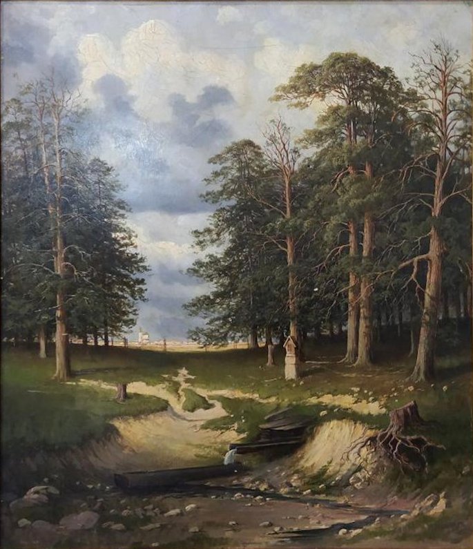 Бревна. Деревня Константиновка близ Красного села. Этюд