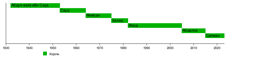 Дольше всего из династии правил король Фахд, находившийся у власти 23 года и 1,5 месяца.