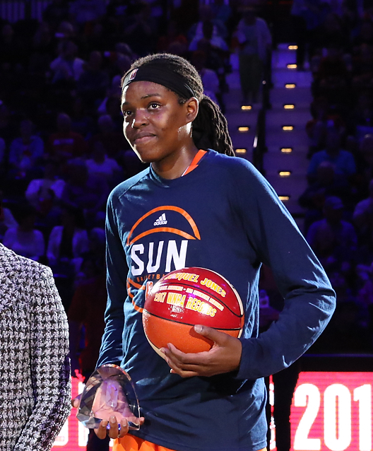 - g В сезоне 2016 года Брианна Стюарт и Тина Чарльз сделали больше всех подборов (по 317), но Брианна провела на два матча больше, чем Тина, поэтому по среднему показателю за игру первая заняла второе место, немного отстав от последней (9,3 против 9,9)[30].