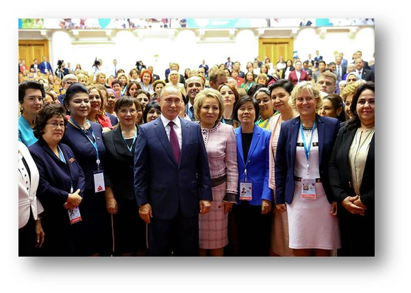 Центральным событием форума стало пленарное заседание «Женщины за глобальную безопасность и устойчивое развитие», на котором выступил президент Российской Федерации Владимир Путин[4].