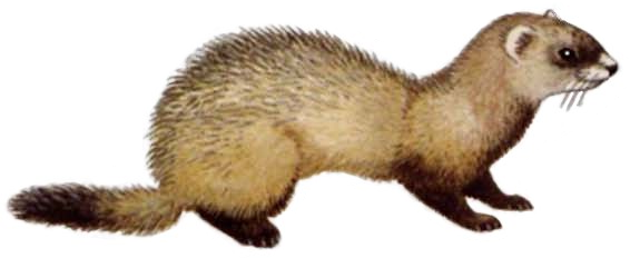 | Степной хорь — вид семейства куньих, отряда хищных. В Красную книгу Ростовской области занесён номинативный подвид этого вида. Длина тела 52—56 см, хвоста — до 18 см, масса тела до 2 кг, самки немного меньше самцов. Распространён по всей степной и лесостепной зонам Евразии. На западе ареал доходит до северных Балкан, центральных областей придунайской равнины. На юге граница ареала в Средней Азии определяется зоной пустынь, а в Центральной Азии — горными системами Гималаев и южного Тибета. В XIX веке являлся типичным хищником, эффективно сокращающим численность сусликов для большинства районов Ростовской области, по данной причине находился под охраной. В большом количестве наблюдался вплоть до 1960—1970-х годов. Однако в последнее время количество представителей вида существенно сократилось. Одним из факторов, вызвавших падение количество хорьков, является резкое снижение и исчезновение во многих местах малого суслика (Spermophilus pygmaeus). Охраняется в десяти заповедниках области и ряде заказников[43]. | |||||||