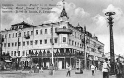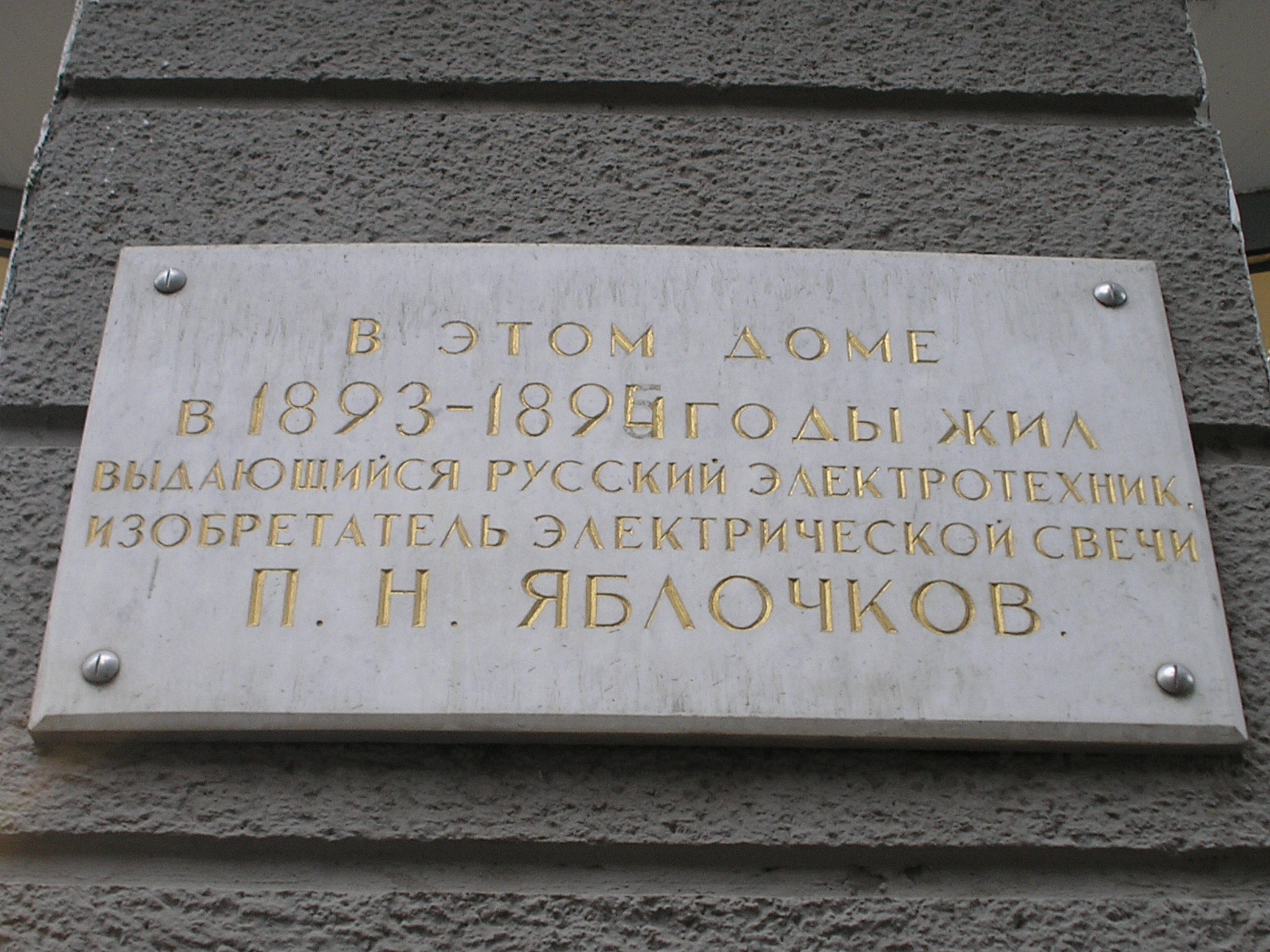 | 35) | 40. | Здание гостиницы, где в одном из номеров жил и умер физик-электротехник Павел Николаевич Яблочков | ул. Им. М. Горького, 35, угол ул. Яблочкова, 1. | [1] | ||