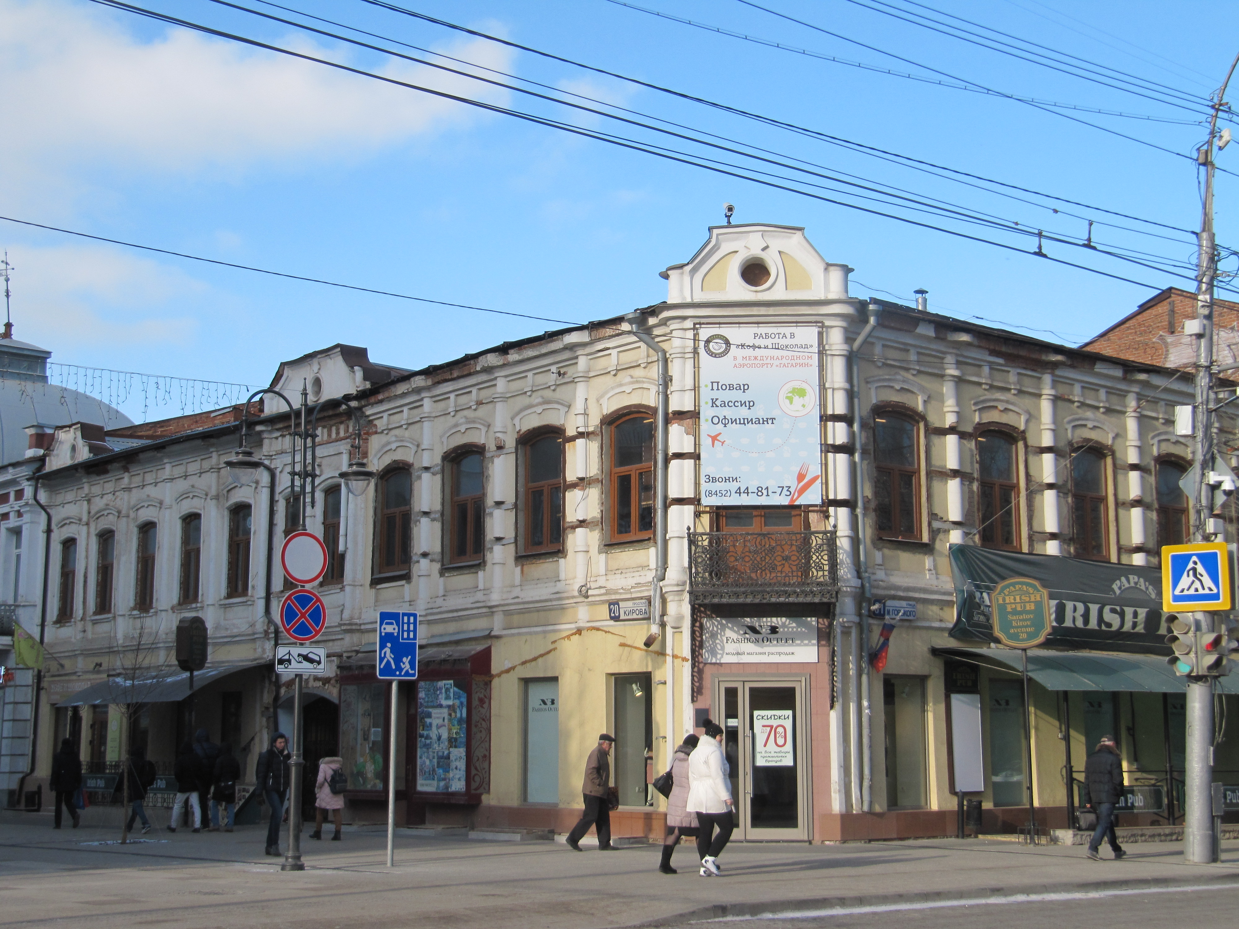 | 115. | Дом П. А. Архангельского, 1890-е гг. | ул. Яблочкова, 28 / ул. Вольская, 48 | [9] | ||