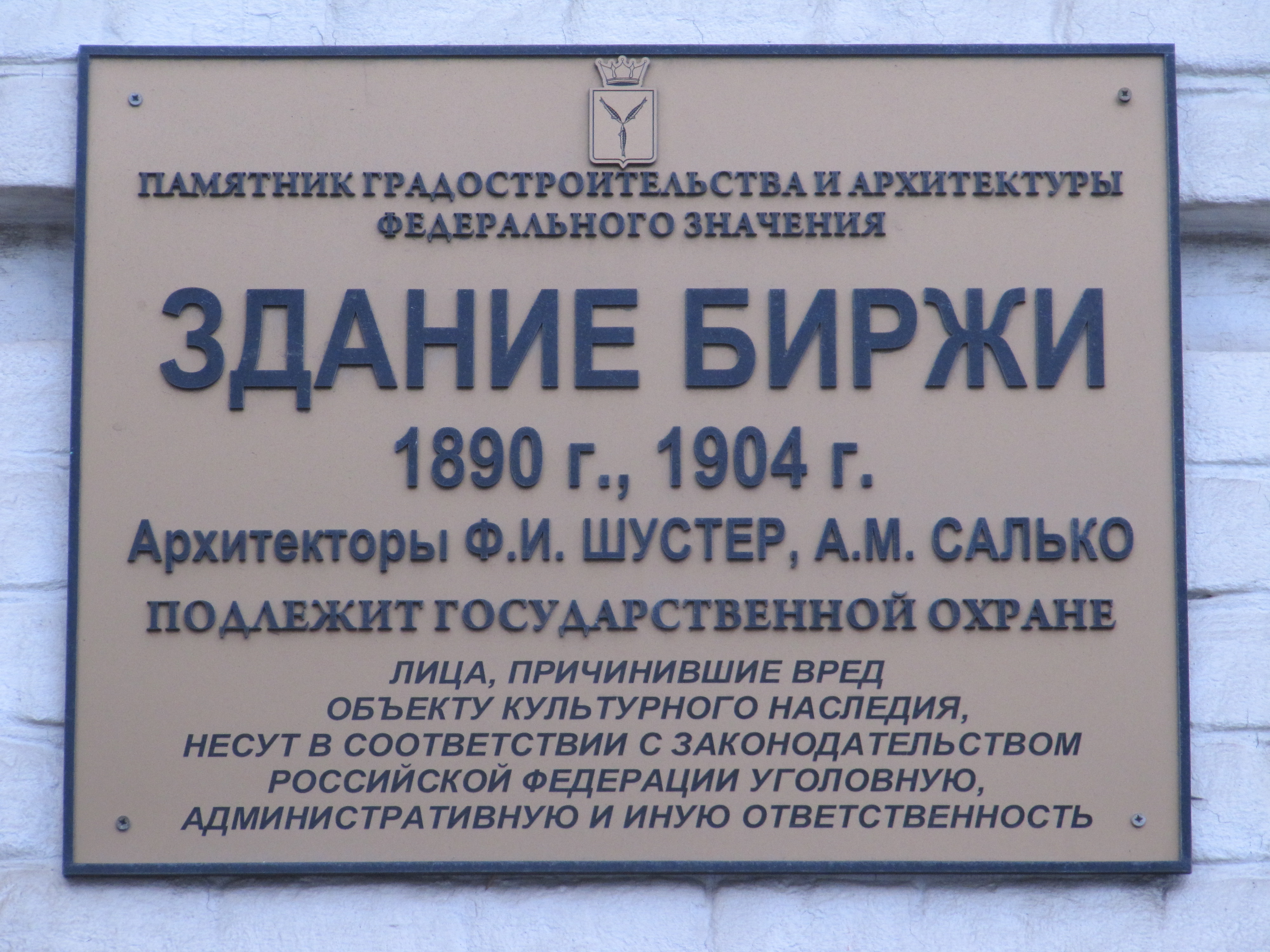 | 23) | 26. | Здание биржи, кон. XIX — нач. ХХ вв. | Радищева ул., 41 | Архитектор Ф. Шустер, 1890, пристройка А. М. Салько 1904. Неоклассицизм[6]. | [2] | |