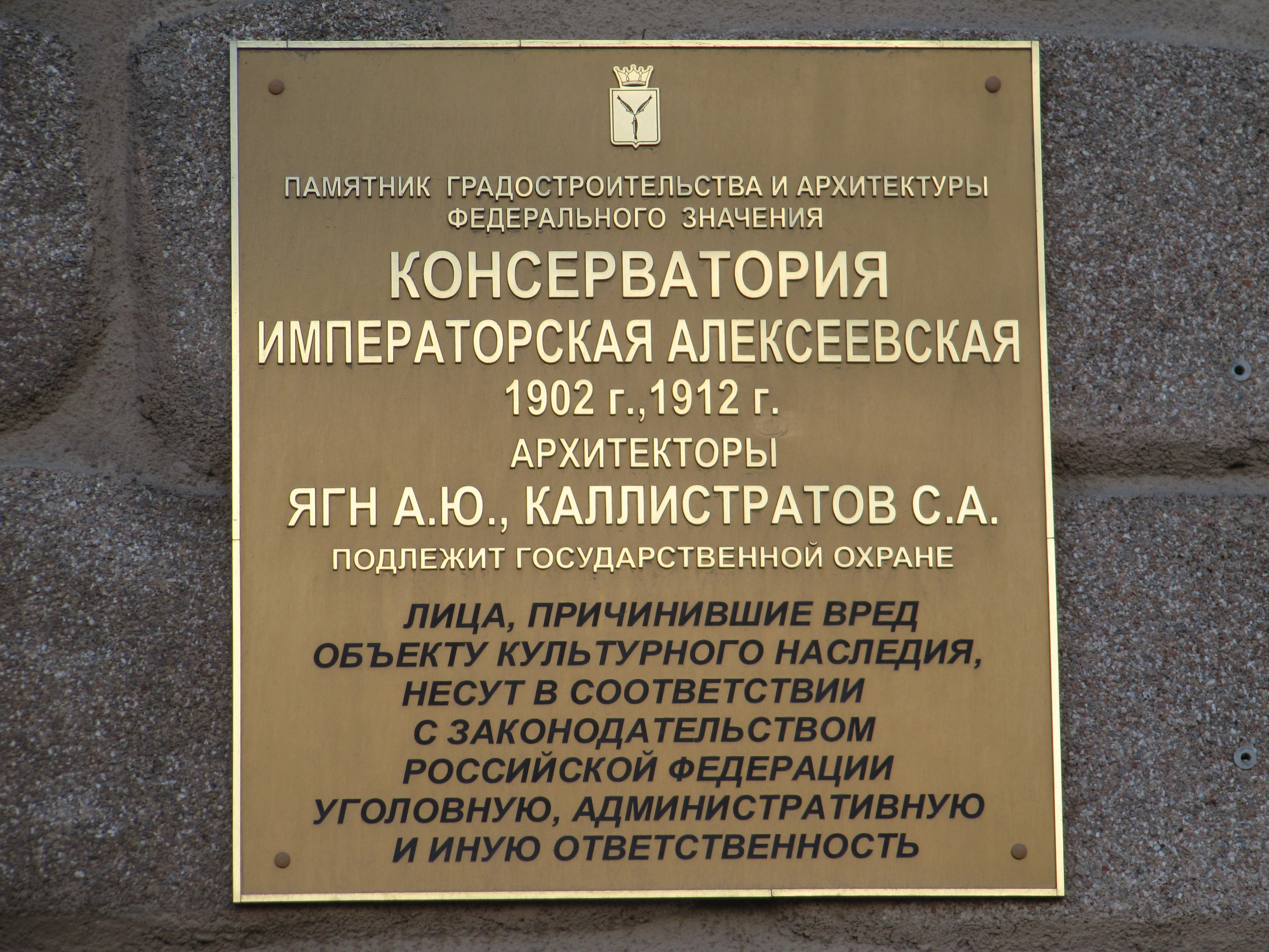 | 5) | 8. | Здание консерватории, нач. ХХ в. | Пр. им. Кирова С. М., № 1-3, угол ул. им. Радищева А. Н., № 29-31 | Первоначальная постройка — музыкальное училище, архитектор А. Ю. Ягн, кирпичная эклектика, 1902.