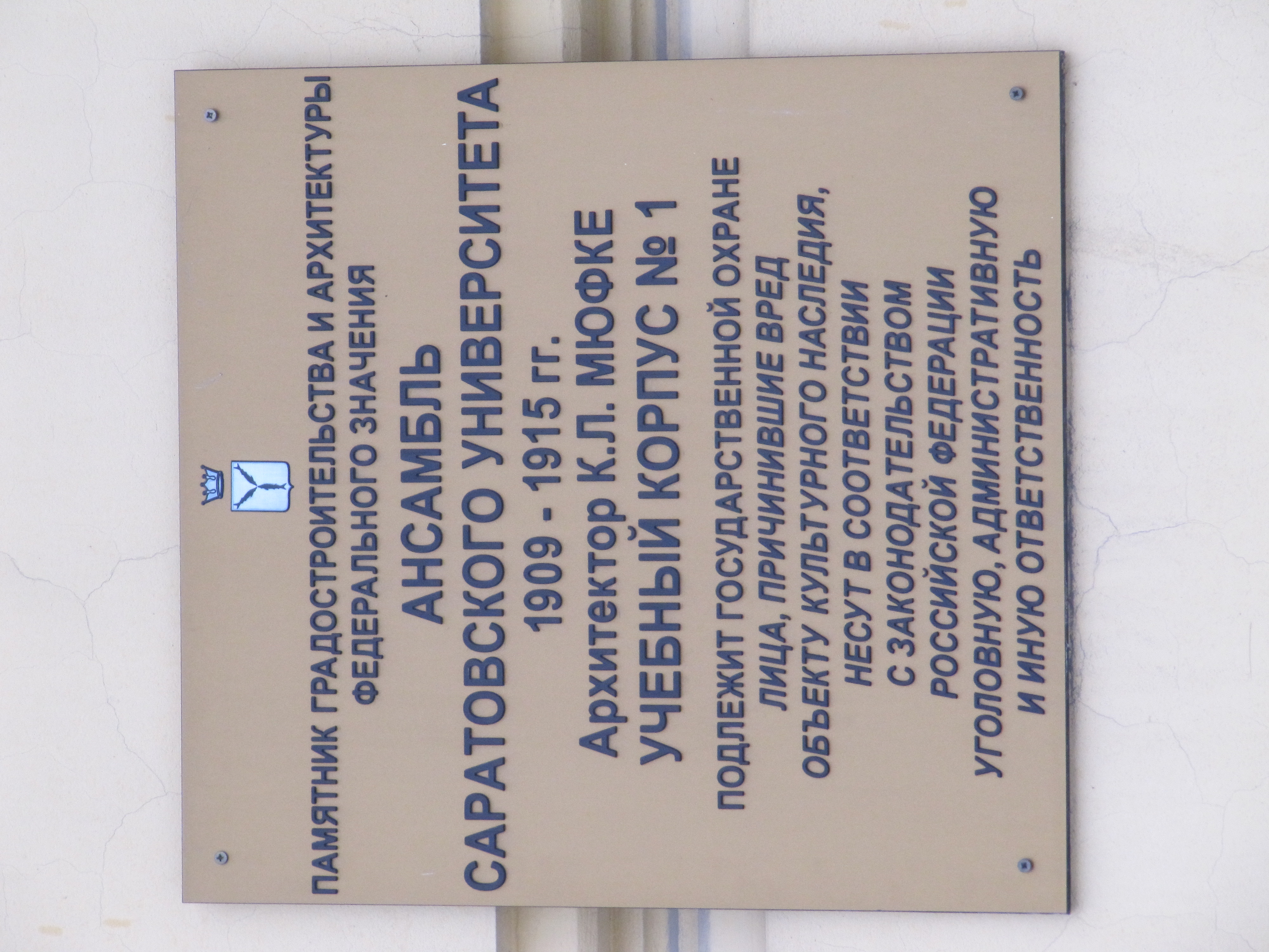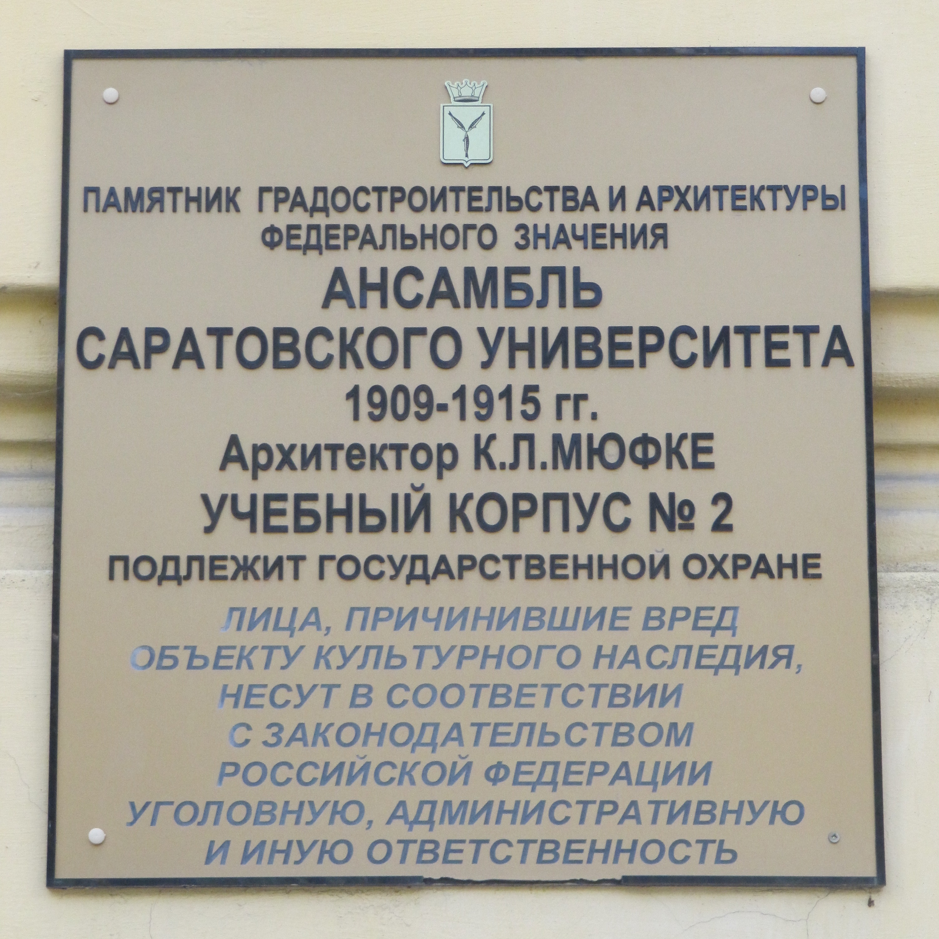 | 1) | Ансамбль Саратовского университета, 1909—1915 гг. | ул. Московская, 155,