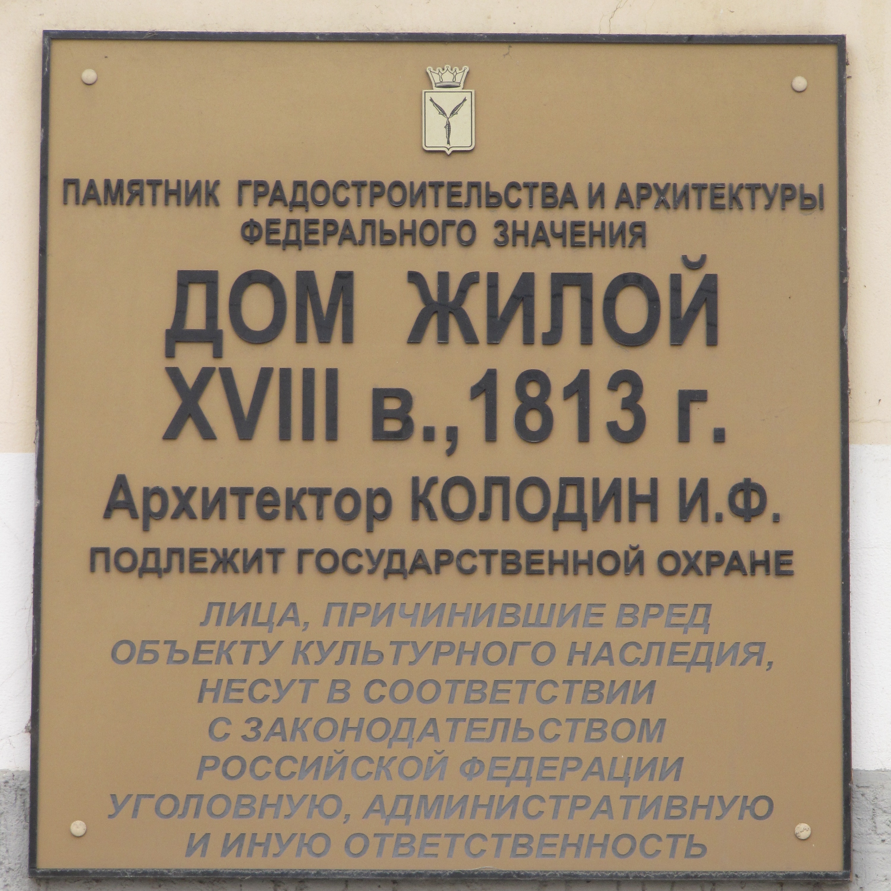 | 8) | 11. | Дом жилой, XVIII в., 1813 г. | Лермонтова ул., 34 | Классицизм, архитектор И. Ф. Колодин | [2] | |