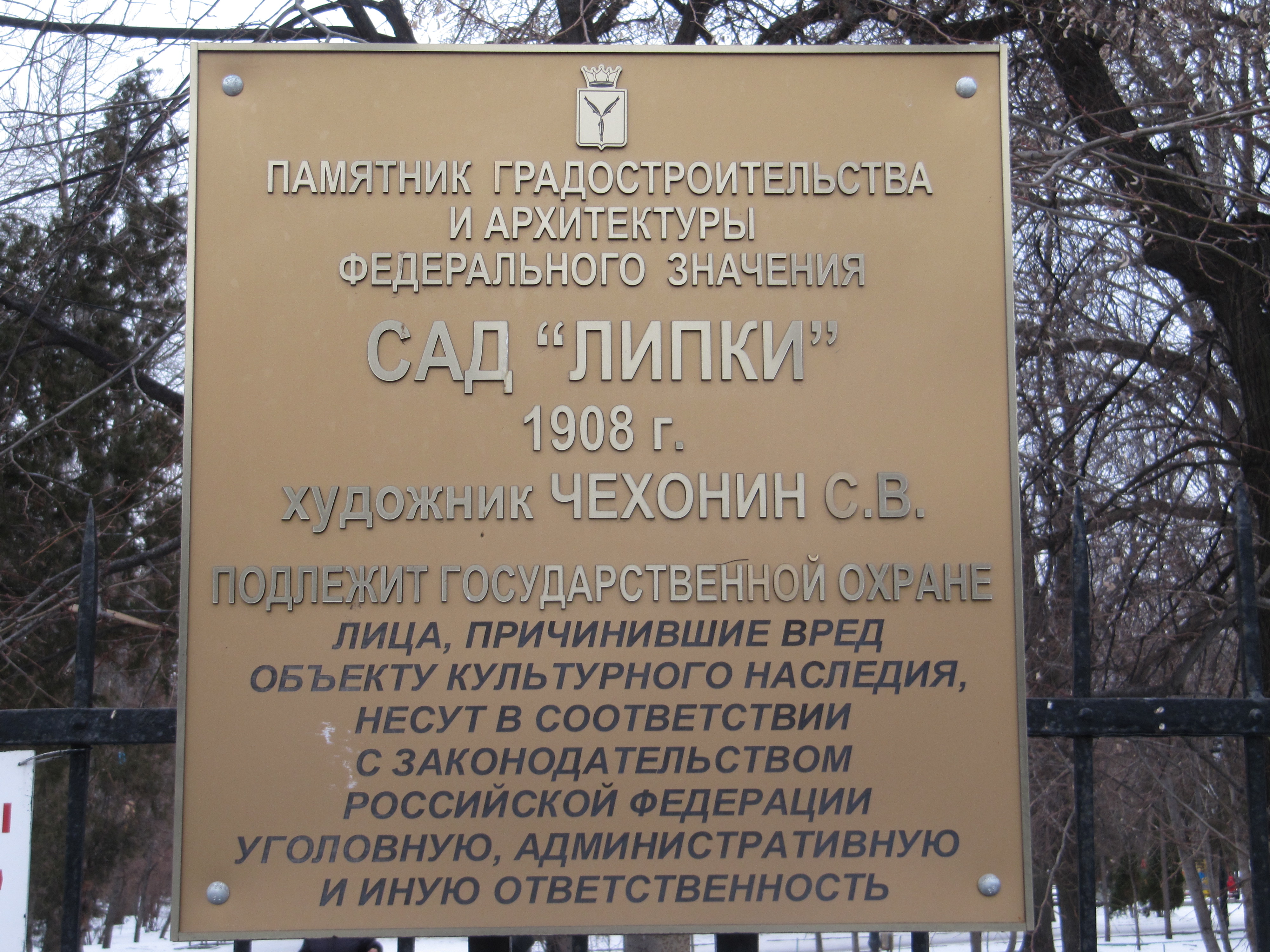 | 20) | 23. | Сад «Липки» | сад «Липки» в Волжском районе | Кованая ограда установлена в 1908 г. худ. Чехонин С. В. | ||