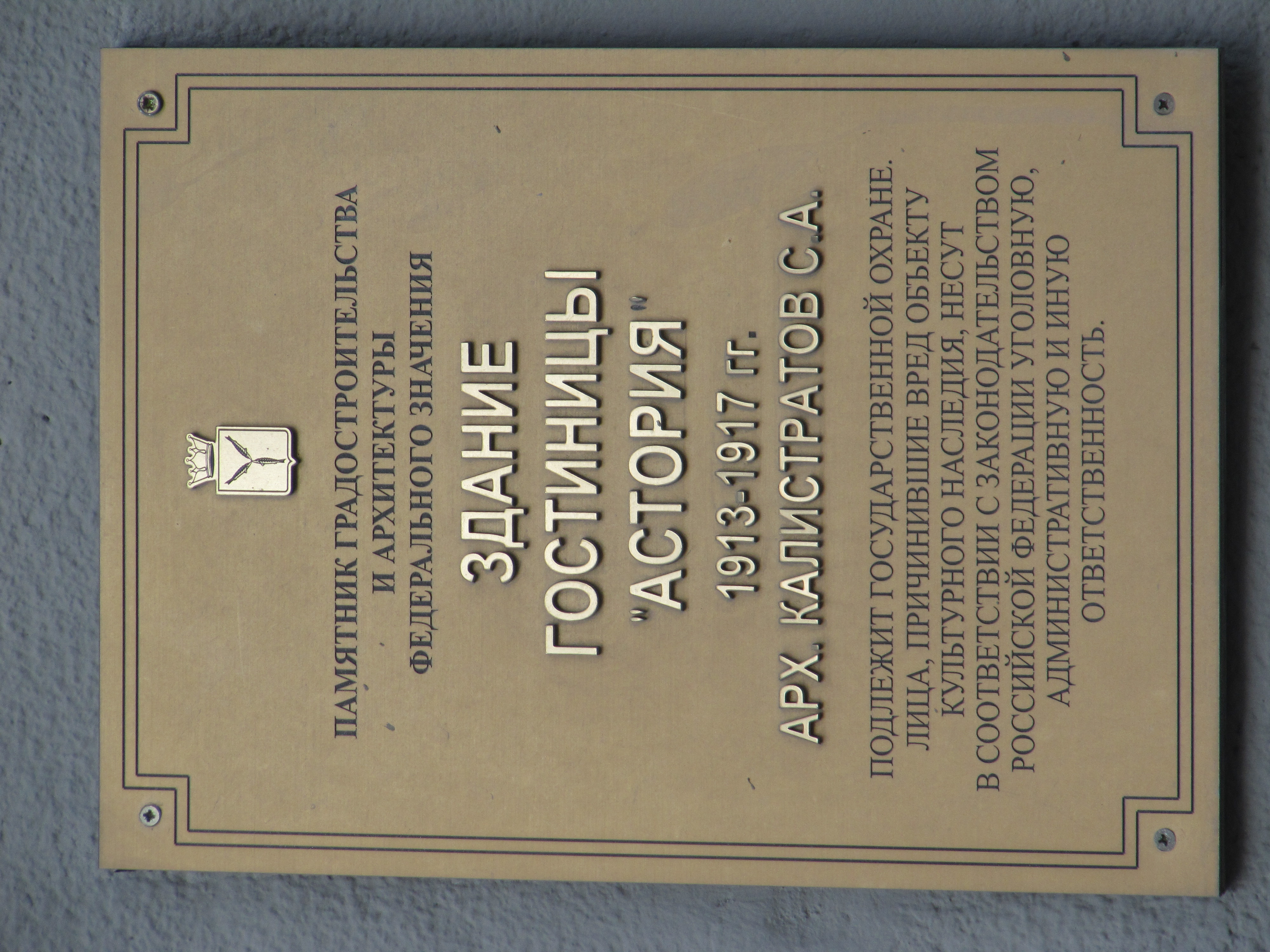 | 6) | 9. | Здание гостиницы «Астория», 1913—1917 гг.,арх. Каллистратов С. А. | Кирова просп., 34 | |||