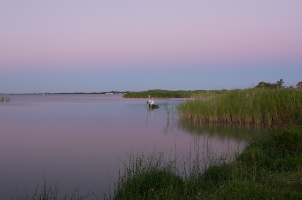 | Александрина | Пресное | Муррейлендс, близ устья р. Муррей | 649 | 2,8 / 6 | Поскольку озеро связано узким каналом с океаном, 5 % времени оно бывает солоноватым. О-в Хиндмарш — самый большой остров в мире из тех, что омываются с одной стороны солёной, а с другой пресной водой. Является домом для более чем 1 % мировой популяции куриного гуся, австралийской пеганки, большого баклана и острохвостого песочника. [95] | |