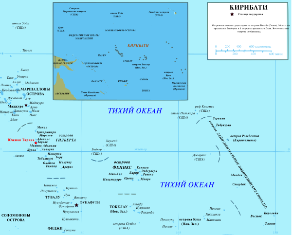 | Тарава | - | Tarawa | 31,02 | 343,6 | 56 284 | 1°26′ с. ш. 173°00′ в. д.GЯO |