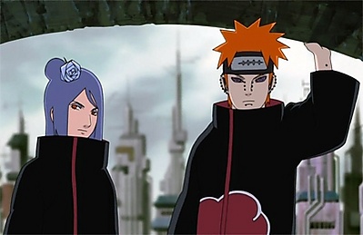 В битве между Конохой и Амэ оставил в живых Дзирайю, Цунадэ и Оротимару с условием, что с этого момента те будут носить титул «Саннины Конохи». Хандзо и Дандзо ответственны за смерть Яхико. Из-за этого Хандзо стал целью Нагато и впоследствии был убит Пэйном.