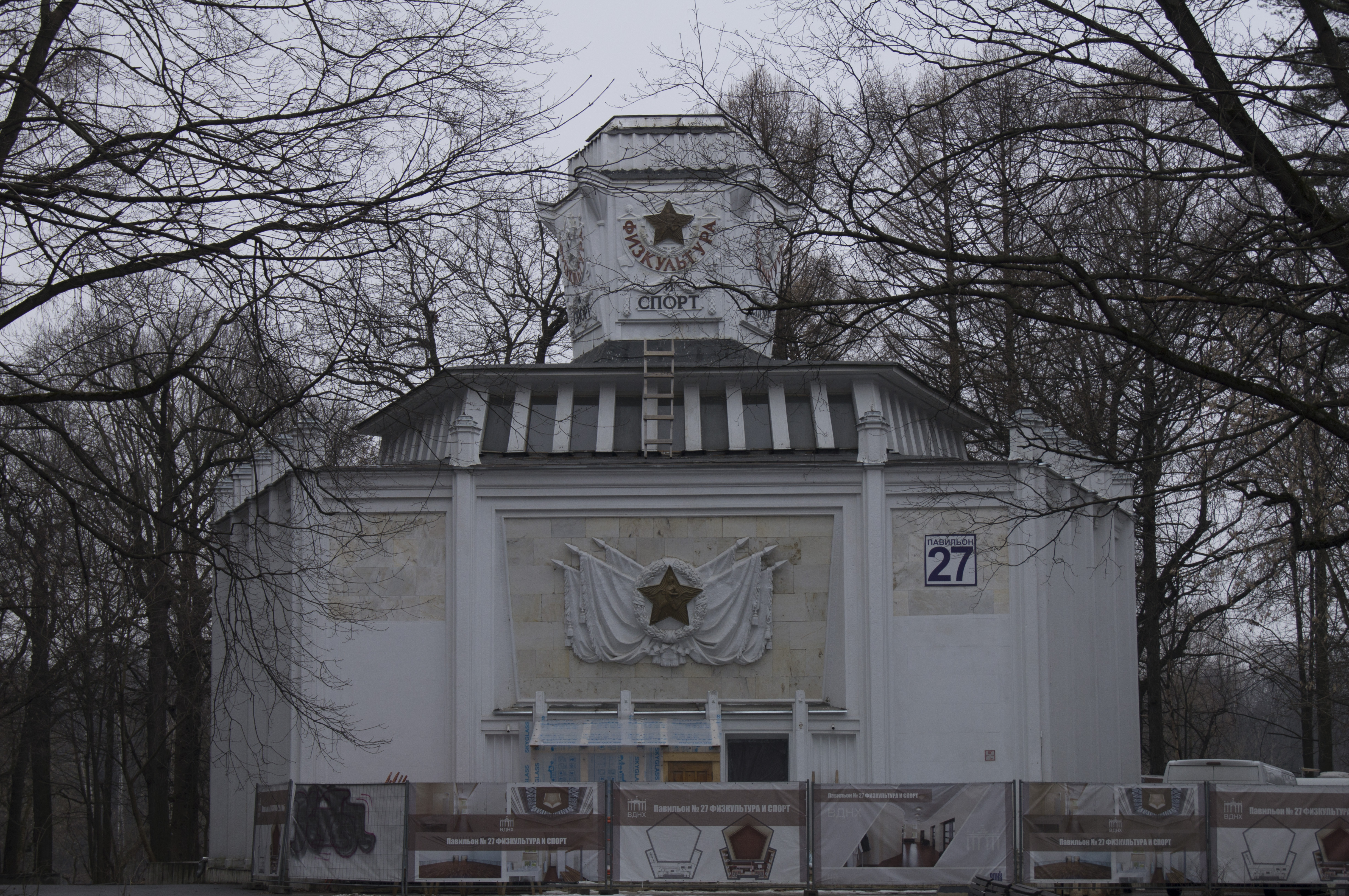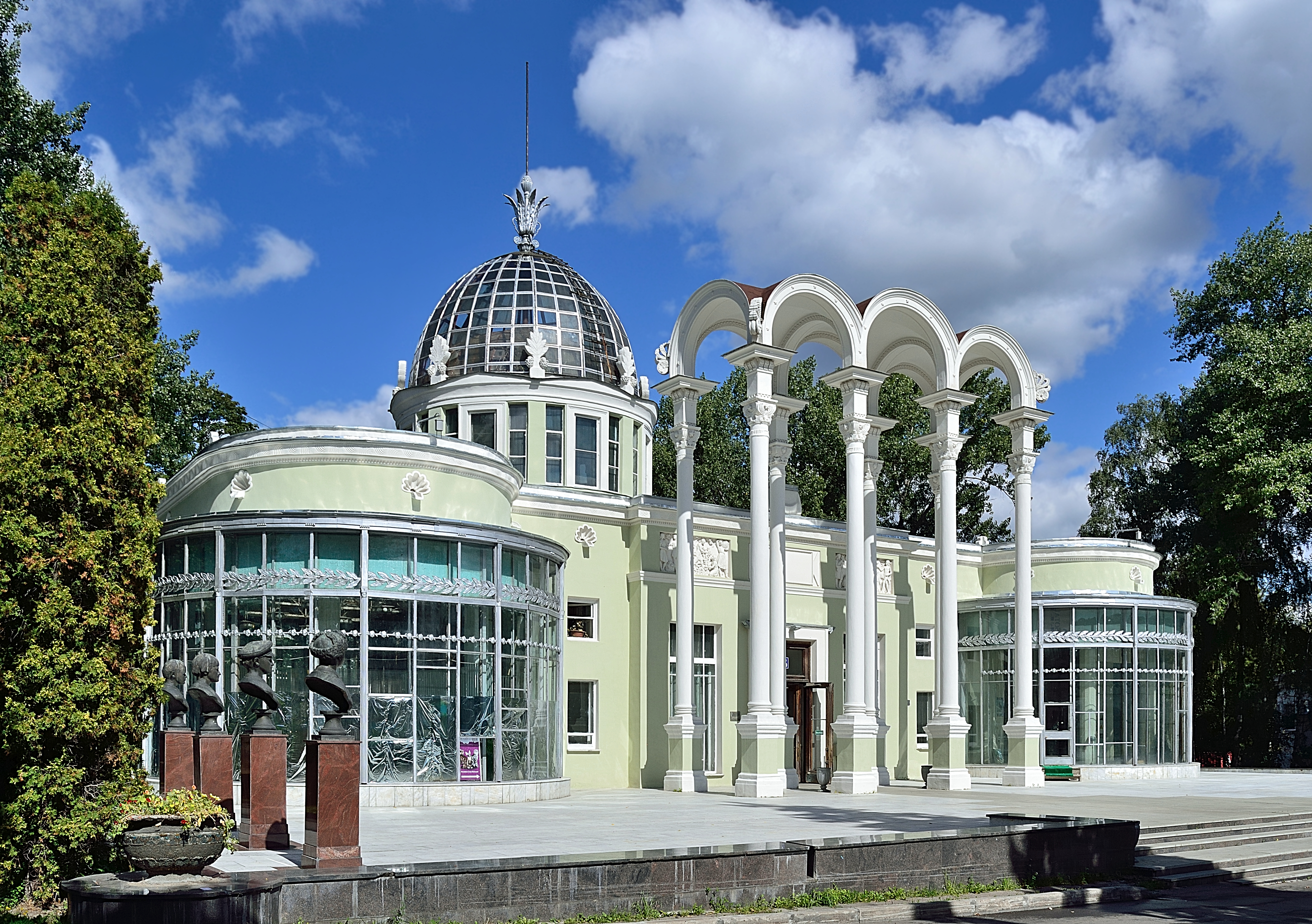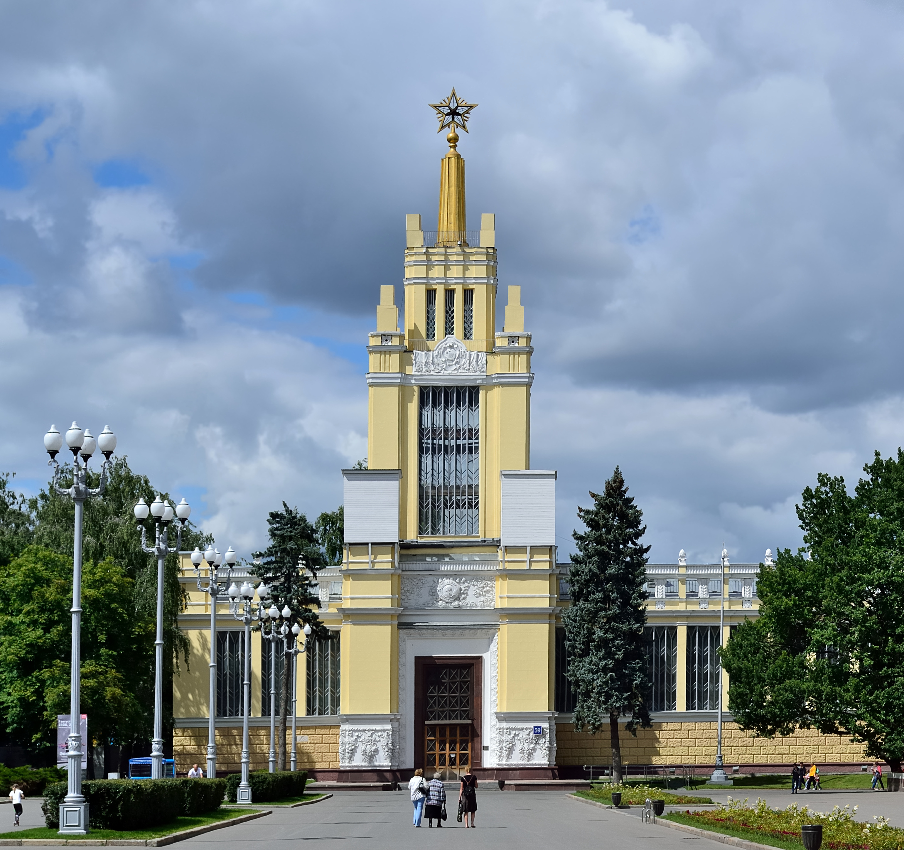 | Главный вход | Архитектор И. Д. Мельчаков. Скульпторы Г. И. Мотовилов (рельефы на пилонах), С. М. Орлов, А. П. Антропов, Н. Л. Штамм, С. Л. Рабинович, И. Л. Слоним (скульптура тракториста и колхозницы)[4]. | 1951—1954 | ||