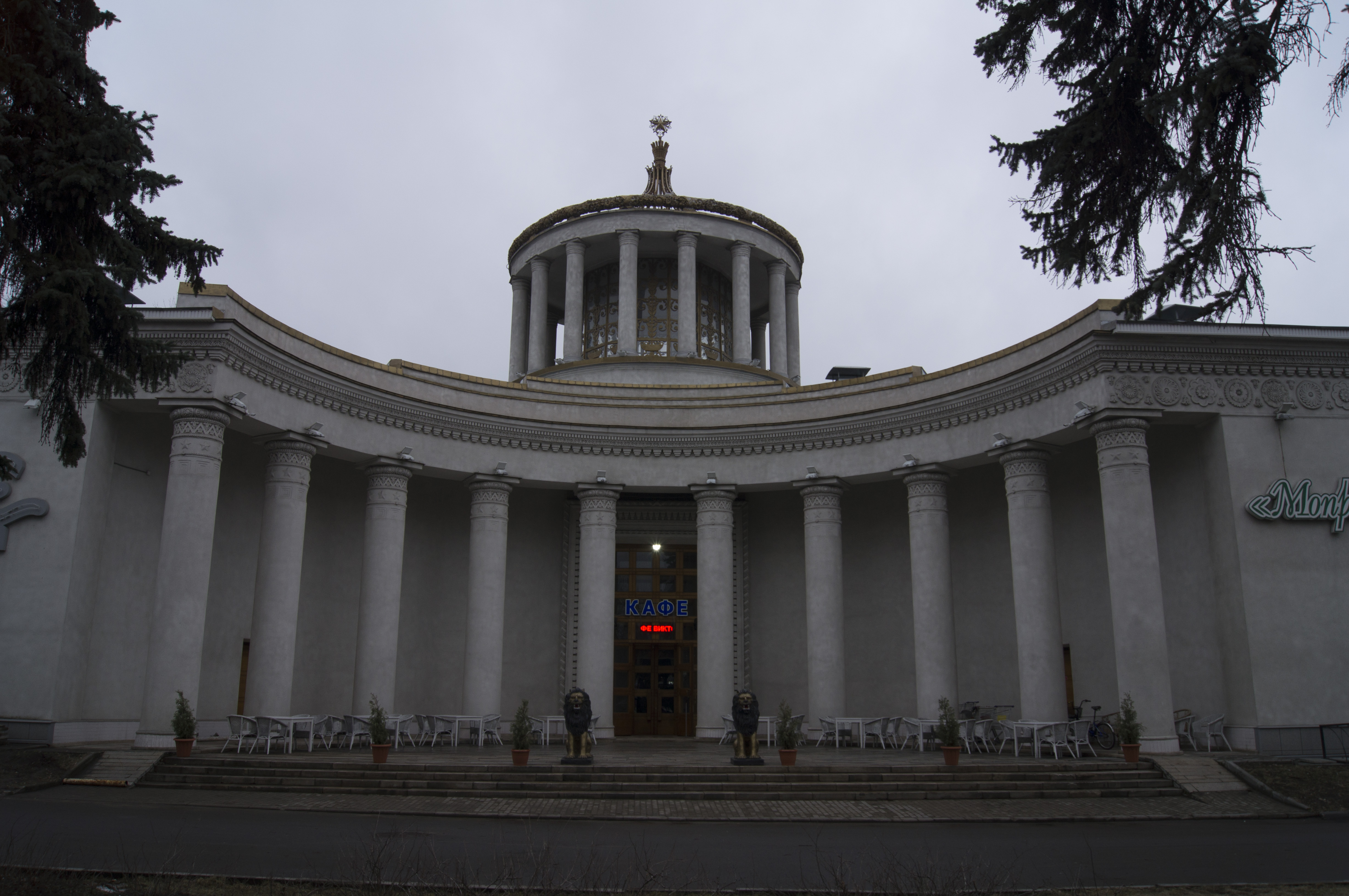 | «Дальний Восток»[103] (с 1959 — «Советская книга», с 1963 — «Советская печать»; в 1967—1977 — выставочный зал павильона «Советская культура») | 1937, архитектор И. А. Француз, перестроен в 1938—1939, архитекторы А. Ф. Жуков, С. Б. Знаменский; 1950-е — реконструкция, архитектор А. Ф. Жуков[104] | 1977 | Пожар | |