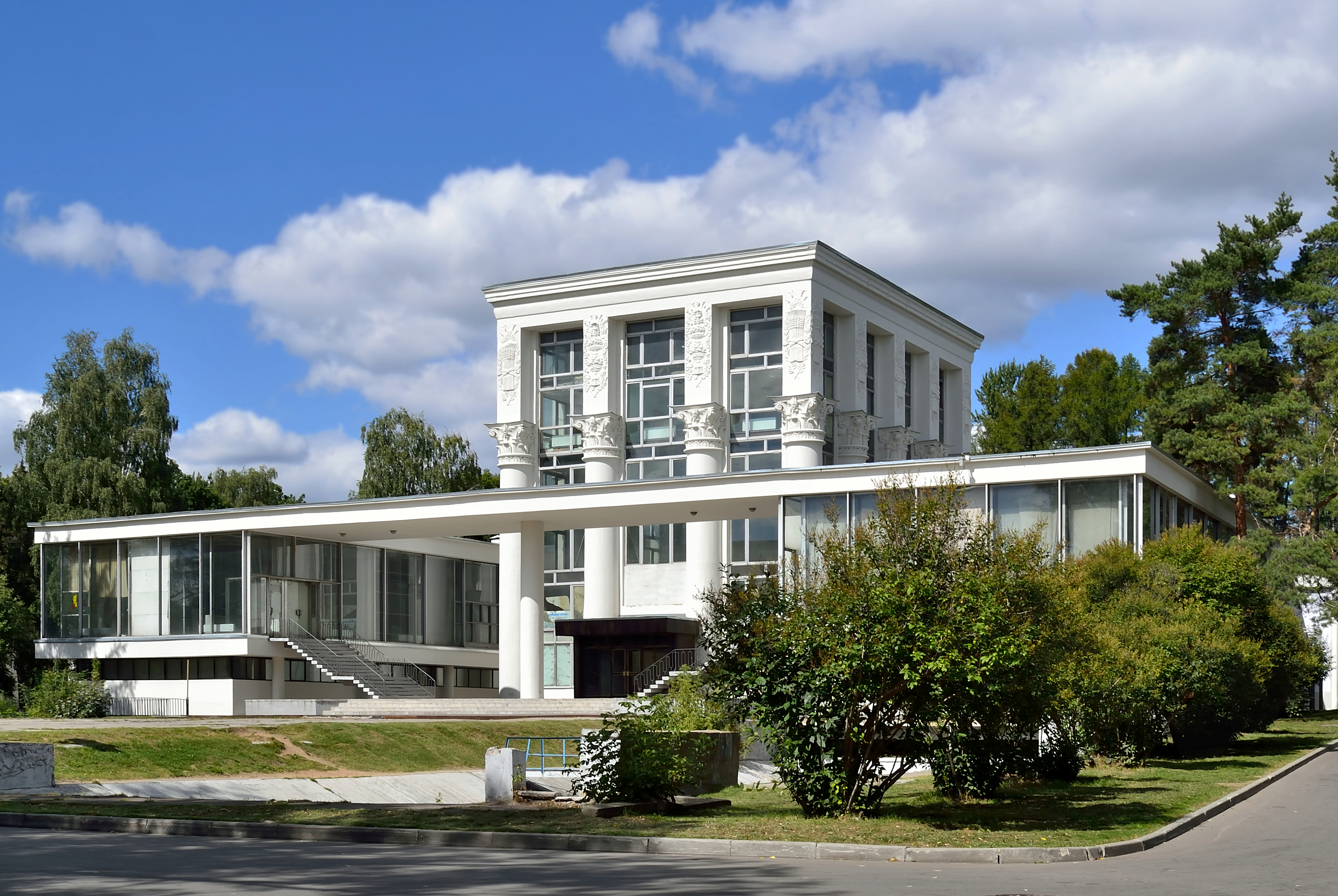 Архитекторы Г. А. Захаров и 3. С. Чернышёва, главный художник павильона А. Н. Гавриленко. Фрески во дворике «Народ Белоруссии построил социализм» — художников Б. Ф. Уитц и О. Т. Павленко с бригадой[21] | 1952—1954 | |
