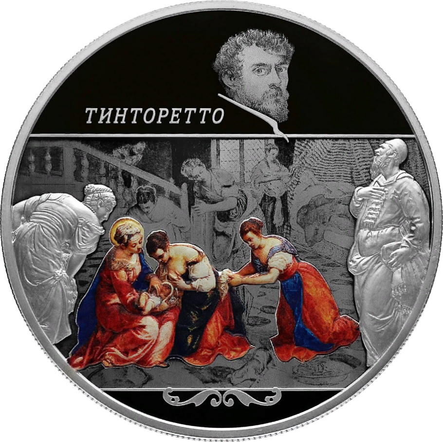 серебро | Сокровищница мировой культуры: Творения Тинторетто (Якопо Робусти). Картина «Рождество Иоанна Крестителя» и автопортрет художника. | |||