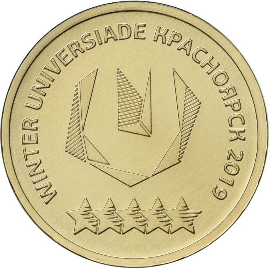 сталь с латунным гальваническим покрытием | XXIX Всемирная зимняя универсиада 2019 года в г. Красноярске. Логотип универсиады. | |||