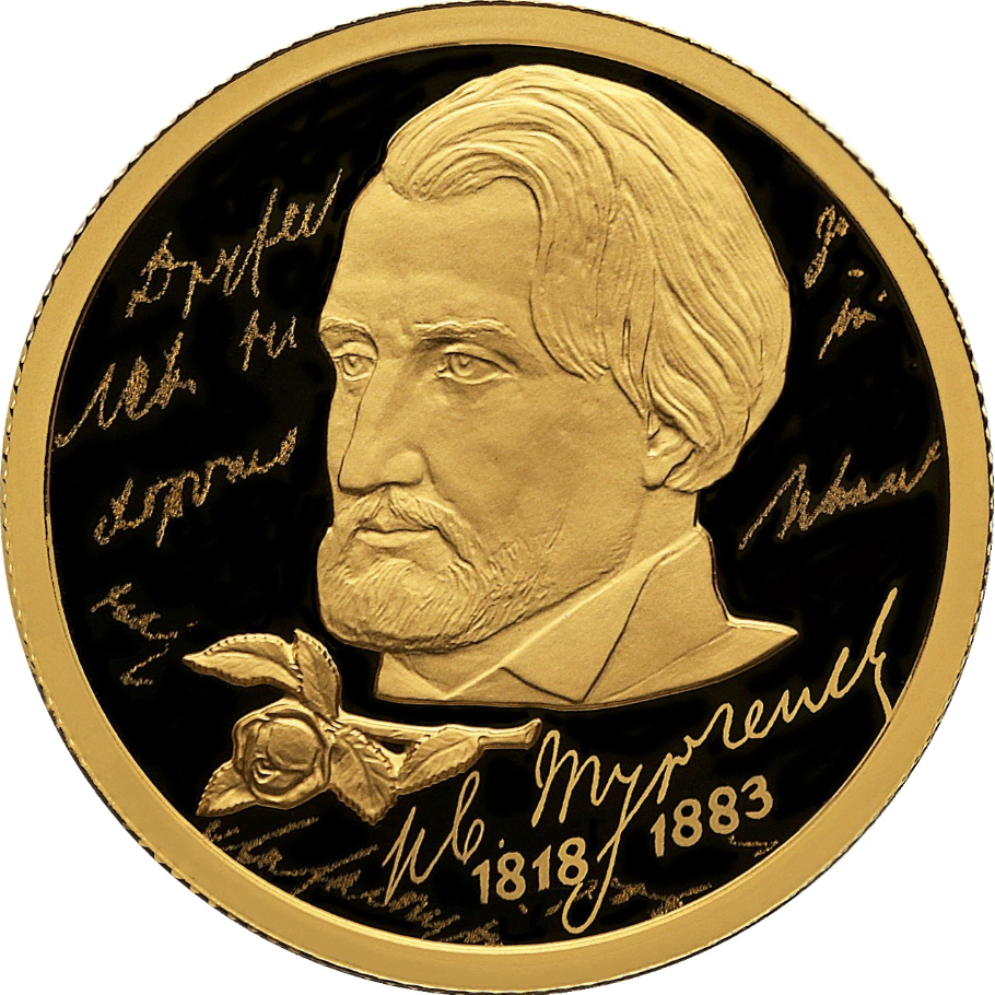 золото | 200-летие со дня рождения И.С. Тургенева. Портрет И.С. Тургенева. | |||