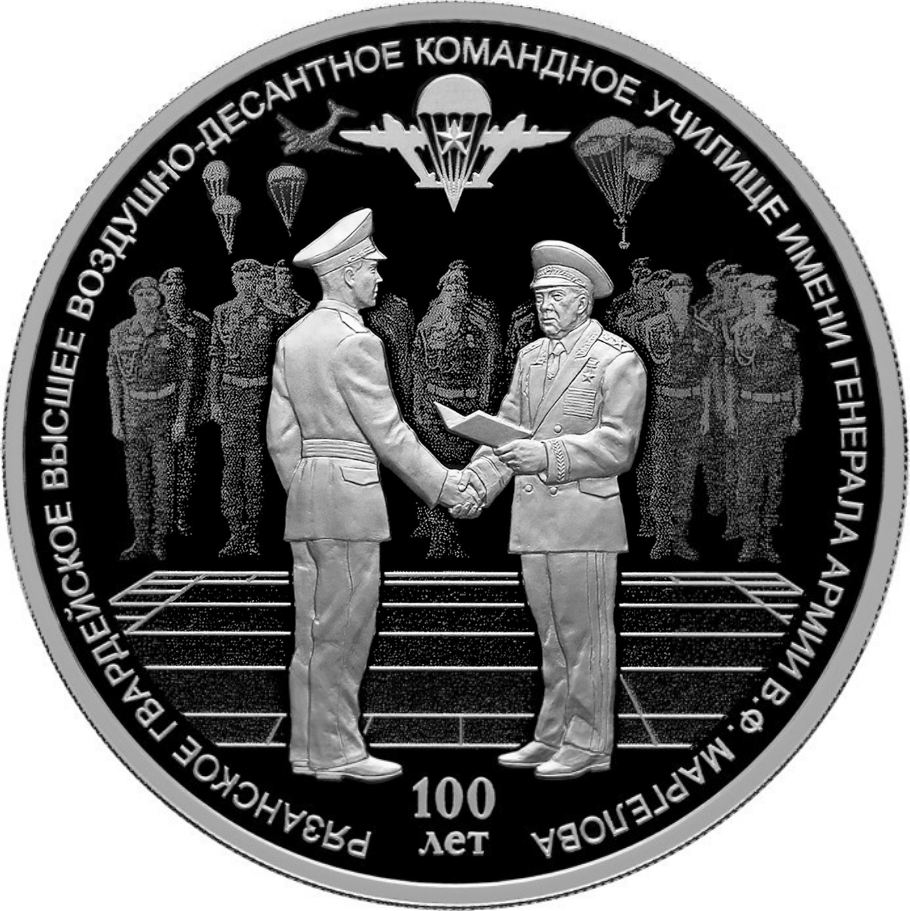 серебро | 100-летие Рязанского высшего воздушно-десантного ордена Суворова дважды Краснознаменного командного училища имени генерала армии В.Ф. Маргелова | |||