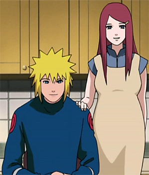 После того, как за 12 лет до начала основных событий манги основателю Акацуки, Тоби, удалось извлечь из только что родившей Кусины Девятихвостого бидзю и натравить того на Коноху[31], Минато вступил с ним в бой и заставил бежать, однако, не сумев одолеть Лиса, Четвёртый был вынужден ценой собственной жизни запечатать его в теле новорождённого сына. Наруто узнаёт[32], что Минато — его отец, лишь, когда при сражении с Пэйном проявились восемь хвостов Лиса, и Удзумаки-младший был готов снять печать для высвобождения бидзю, — в его подсознании появляется Минато и говорит Наруто о том, что ждал этого момента, чтобы увидеть, каким стал его сын.
