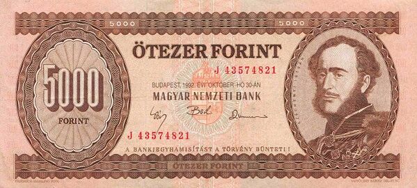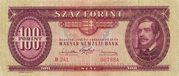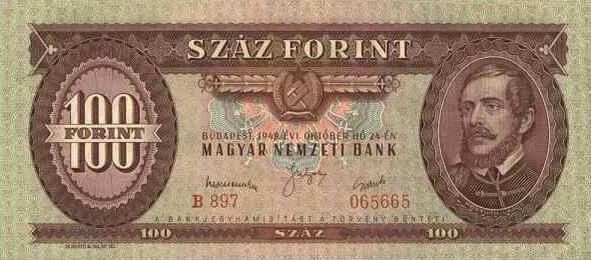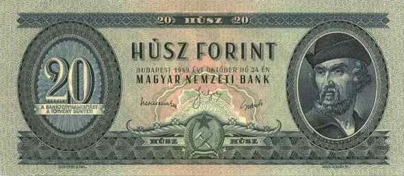 Выпуск венгерских банкнот был начат в период революции 1848—1849 годов. Из всех банкнот, выпущенных революционным правительством, только на в 10 форинтах 1848 года была изображена женская голова, на других купюрах изображений людей не было. В 1919 году Венгерской Советской Республикой были выпущены банкноты Почтово-сберегательного банка. На всех номиналах этого выпуска имелись изображения людей, однако ни одно изображение не было портретом какого-либо исторического, военного деятеля или иной известной персоны. Выпуск банкнот с портретами исторических персонажей был начат в 1920 году[1].