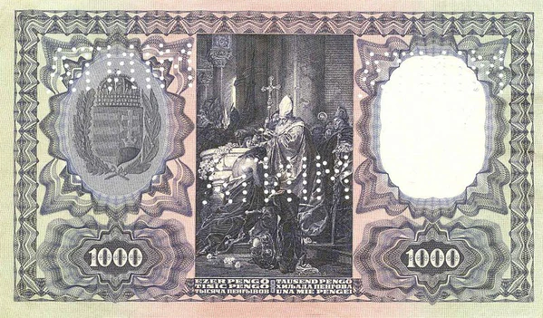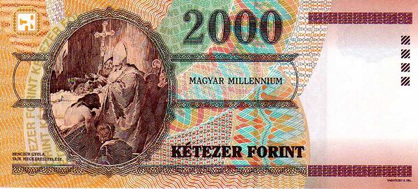 Рисунок банкнот в 1000 крон 1920 и 1923 годов выполнил Ференц Хельбинг, 1927 года — Золтан Эгри, 1936 — Эндре Хорват. На 10 пенгё 1936 года изображён памятник Иштвану в Буде. На банкнотах в 1000 пенгё 1927 года и 2000 форинтов 2000 года помещена картина Дьюлы Бенцура «Крещение Вайка» (Вайк — имя Иштвана до крещения).