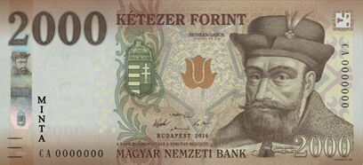 Рисунок банкноты выполнил Эндре Хорват. На банкноте изображён памятник Шебештьену Тиноди работы Дьюлы Безереди.