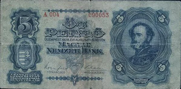 Рисунок банкноты 1926 года выполнил Ференц Хельбинг, 1928 года — Альмош Яшик. На банкнотах изображён портрет Сеченьи работы Фридриха Амерлинга.